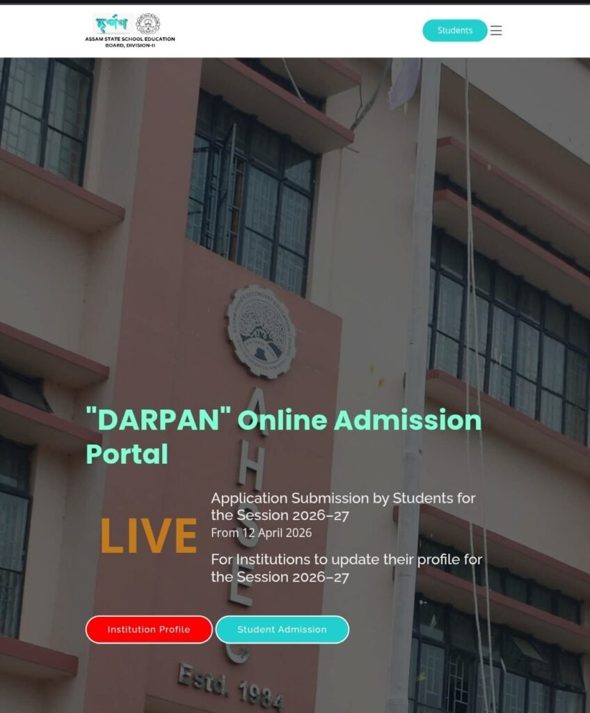 The Assam HS 1st Year Admission process gives Class 10 passed students a structured and fair way to get into higher secondary (Class 11) education. The Assam State School Education Board, Division II (ASSEB, DIV-II), manages this entire process. Instead of students running from school to school or dealing with paper forms, they can now apply online from home through the Darpan Portal at https://darpan.ahseconline.in/.