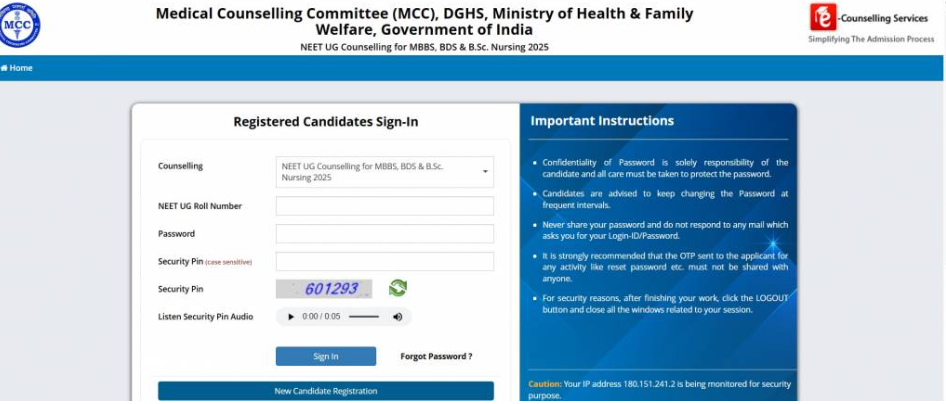 - Candidates have to register online for each round of counselling through the MCC portal.