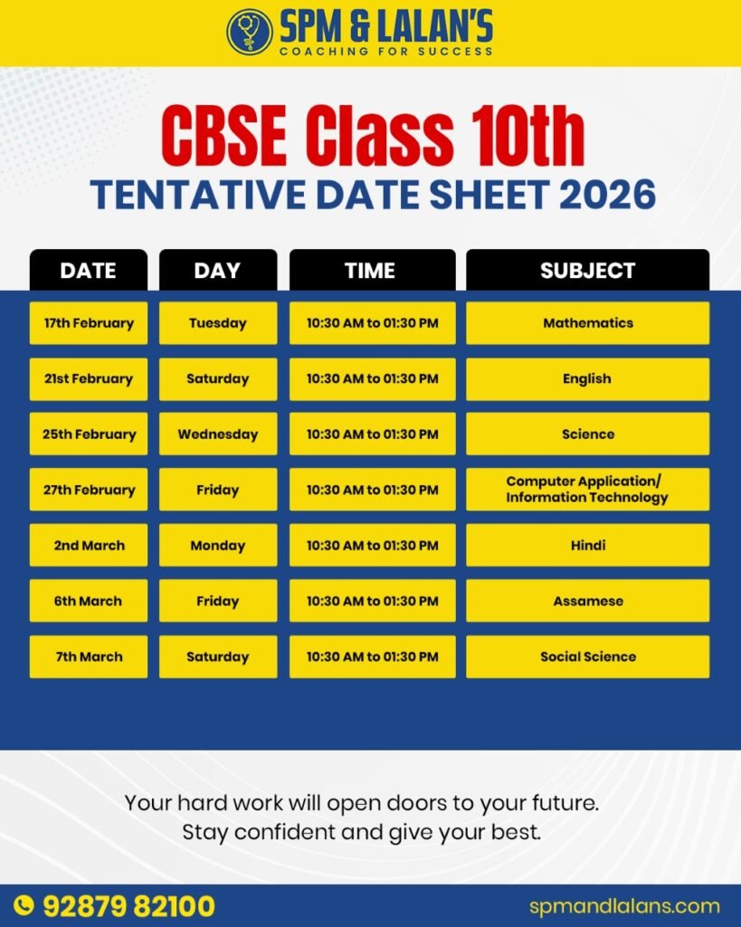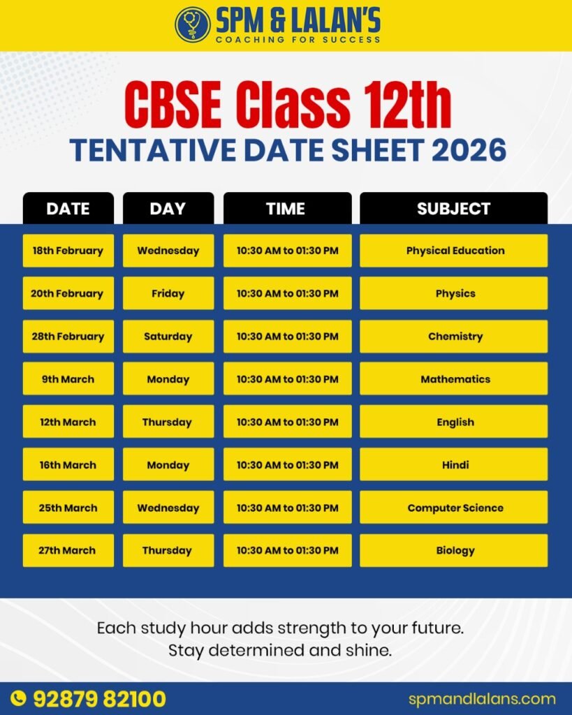 At SPM & Lalan’s, we guide students to use this final schedule effectively to plan their preparation and revision in a structured way,as all CBSE exams will be held in a single shift starting from 10:30 AM across all centers.