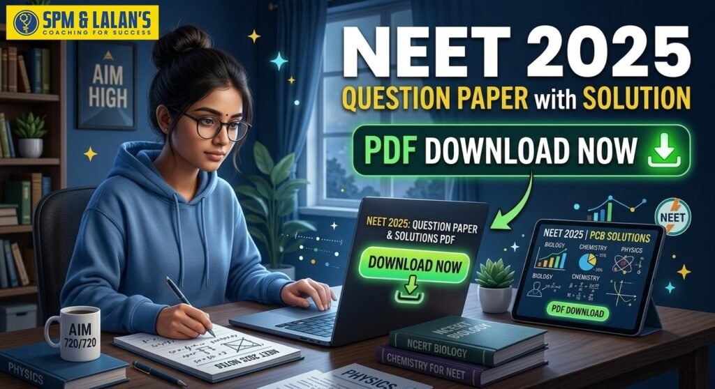 You can download the NEET 2025 Question Paper PDF from official exam websites and the website of SPM & LALAN’S Coaching, along with solutions.